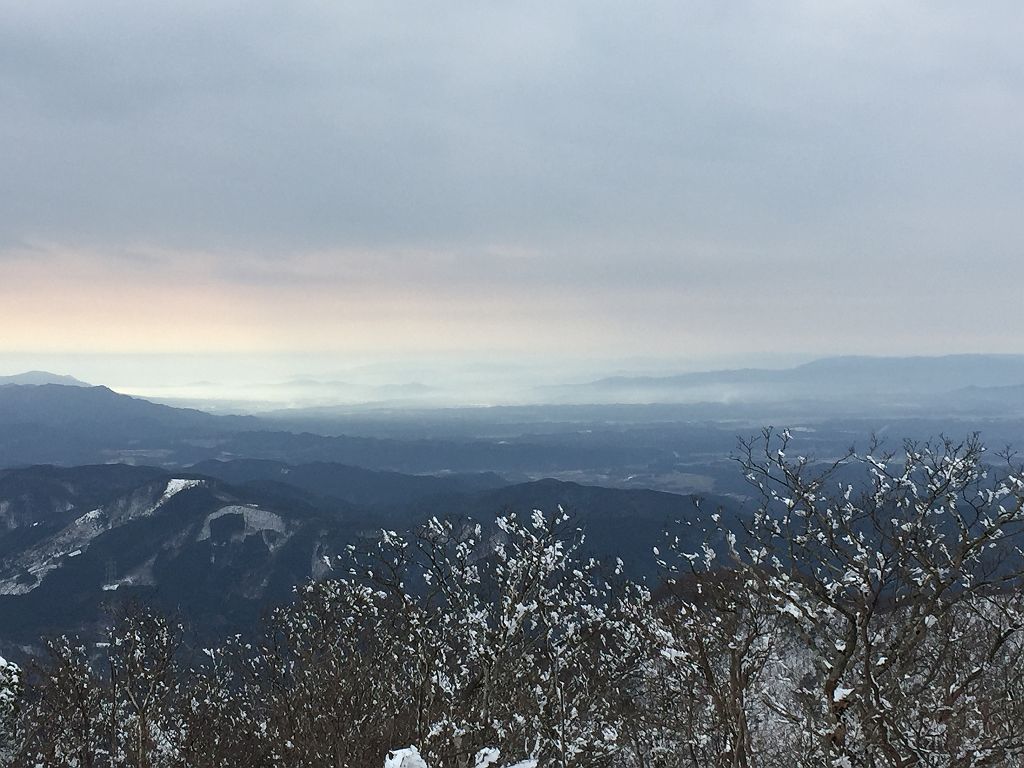 小屋からは琵琶湖や雪で覆われた比良山系の山々が一望できる