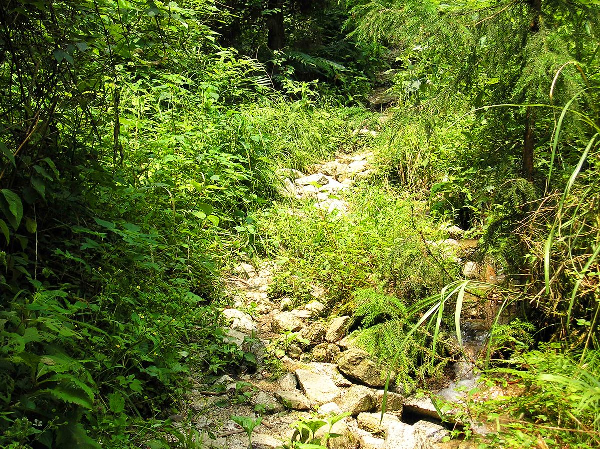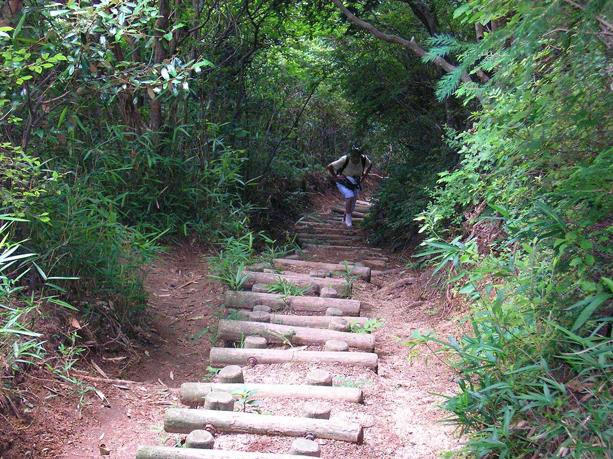 階段だらけで膝が笑いそうな下りの道