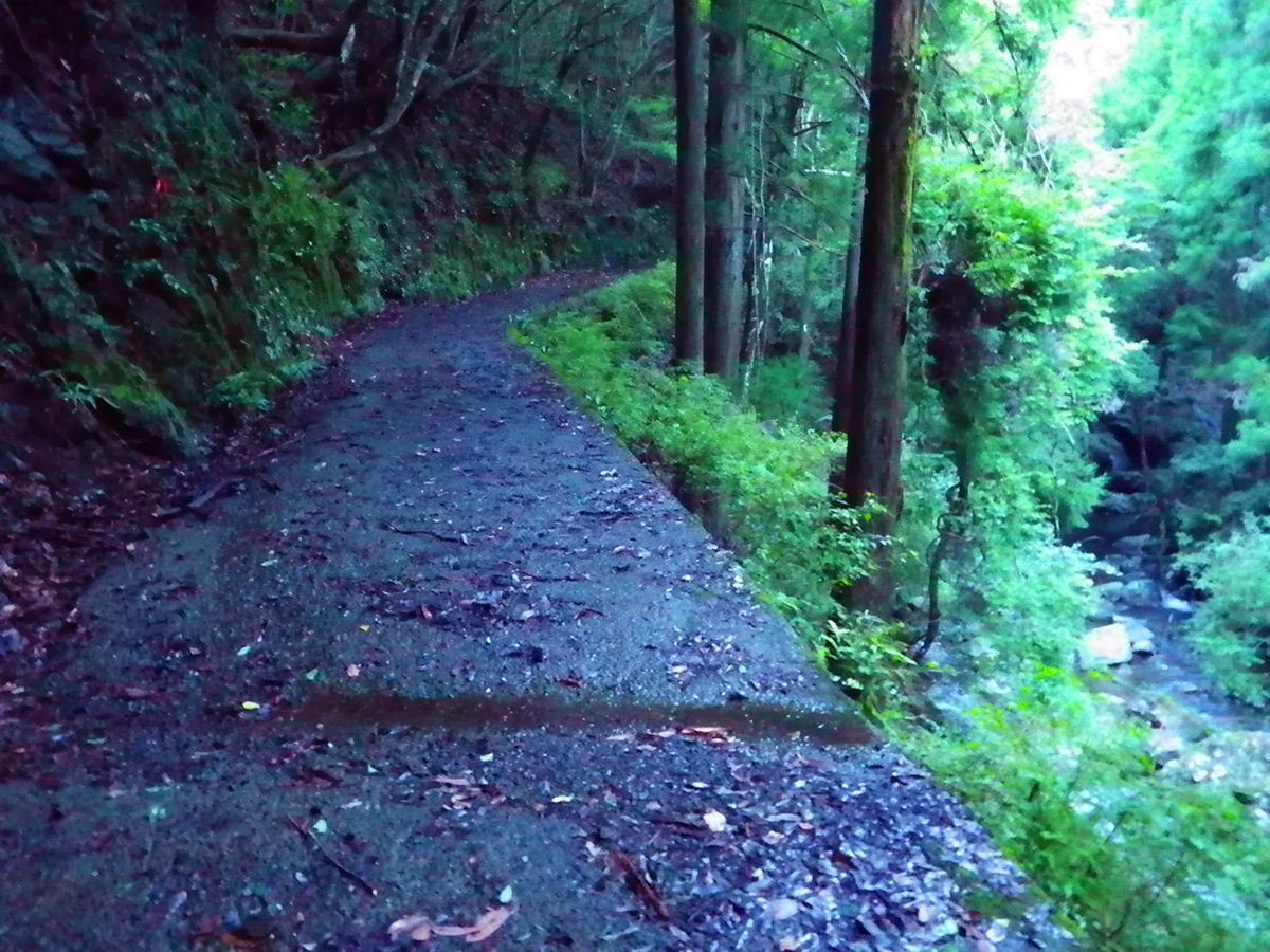 沢沿いに林道が続く。かなりジメジメしているけどこの山でヒルが出た情報はないので大丈夫だろう