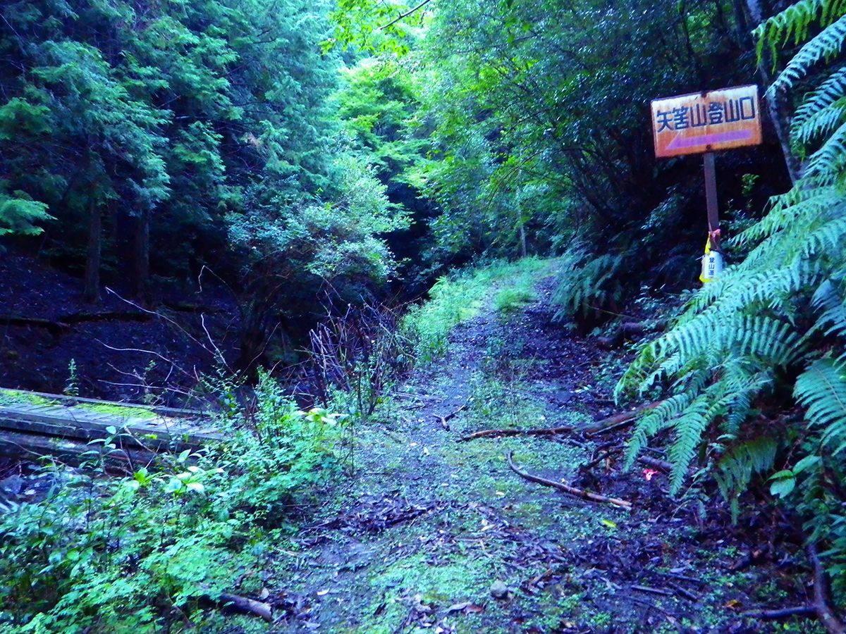 矢筈岳登山口まで下ってきた。ここから長い林道歩きがはじまる
