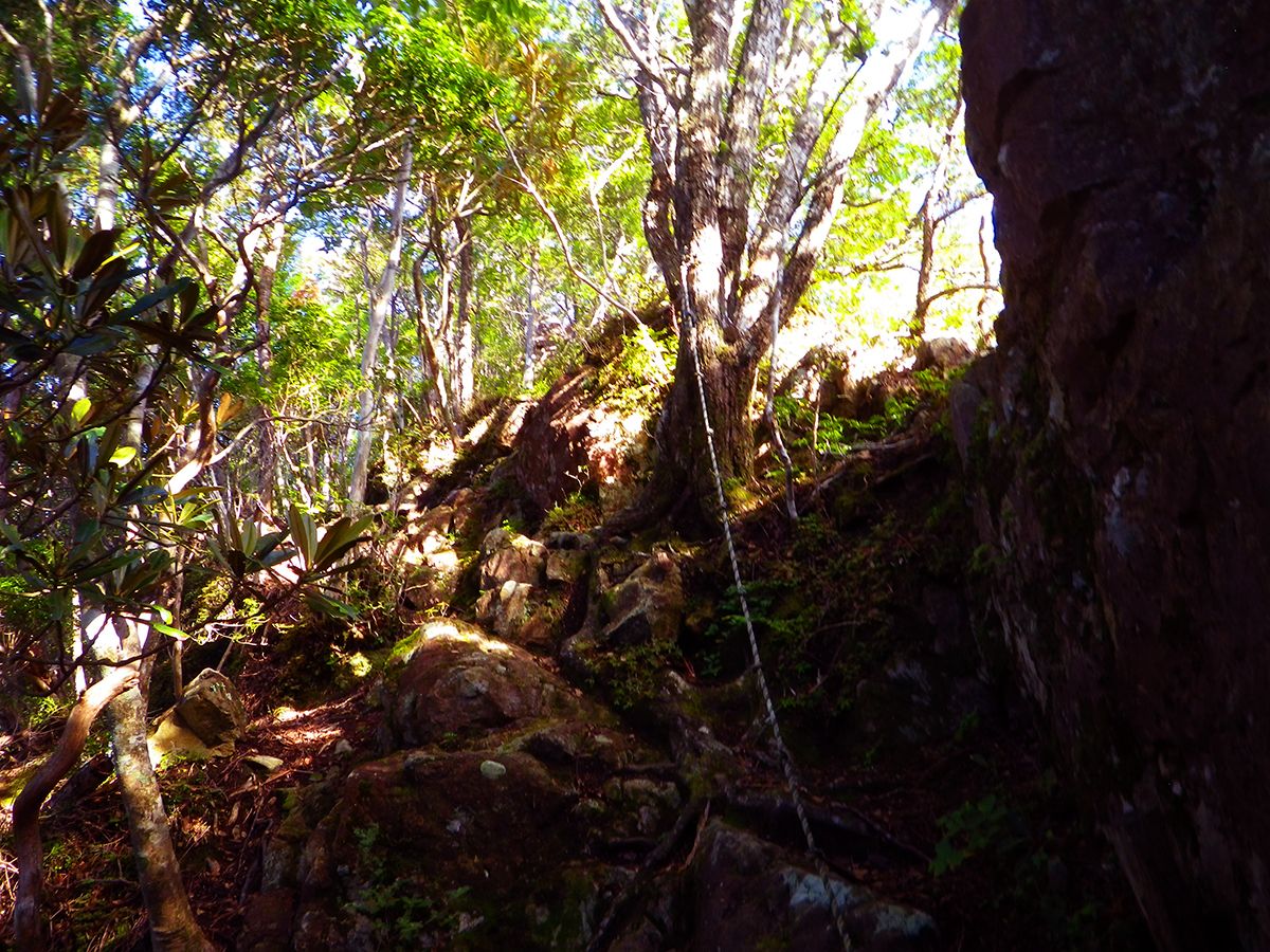 矢筈岳の山頂直下には岩のロープ場があったけど、別にロープなしでも普通に登ることはできた