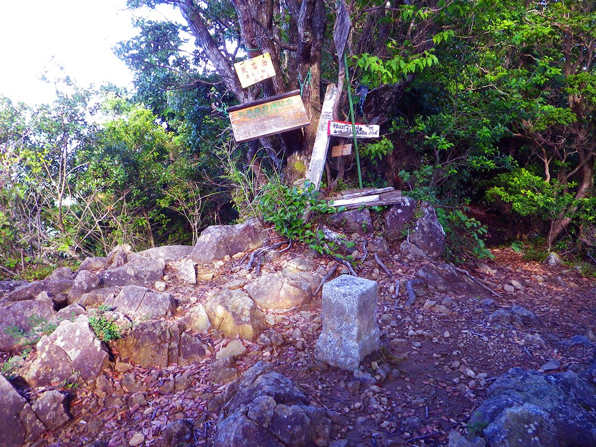 矢筈岳の山頂(811m)に到着。山頂は少し狭いピークで三角点とプレートがあった