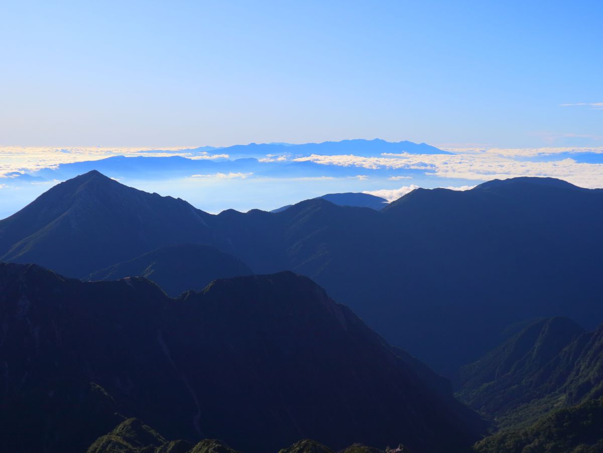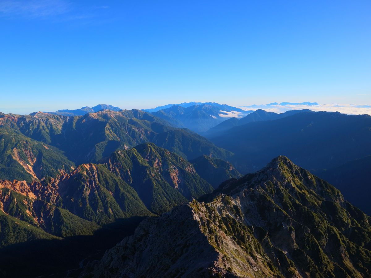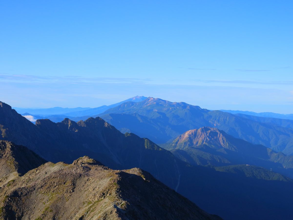 穂高岳方面。乗鞍岳や御嶽山も見えている