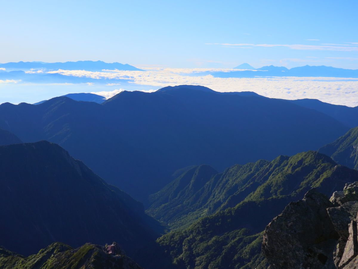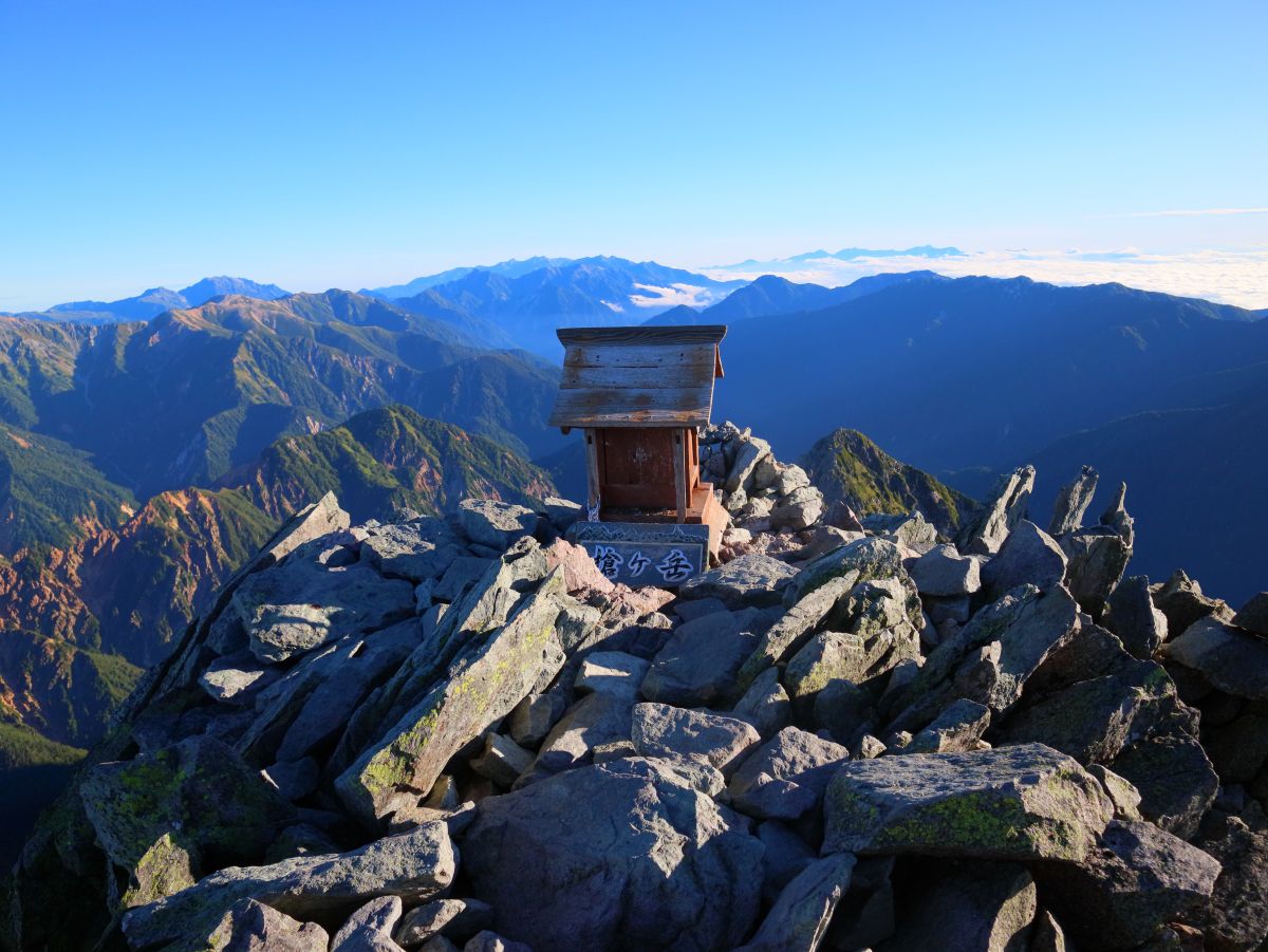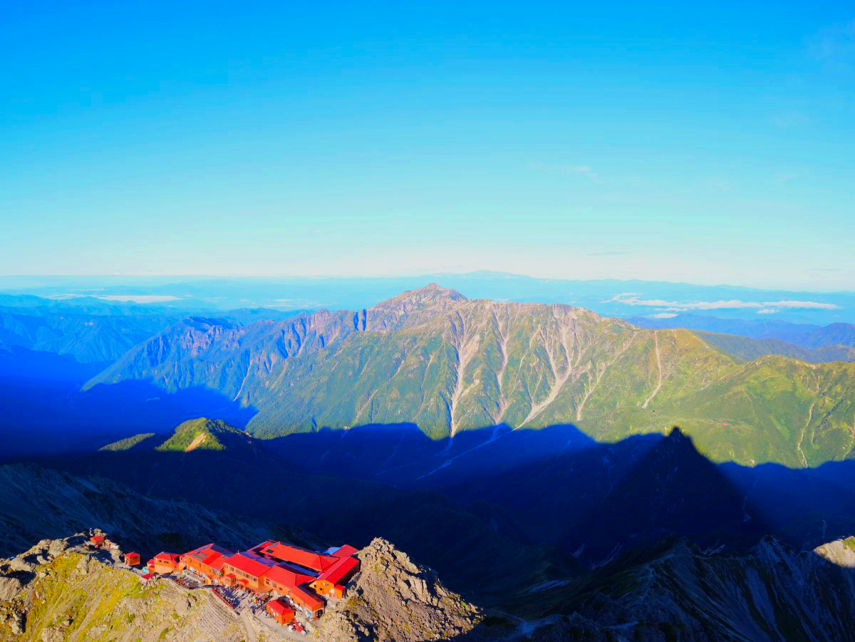 穂高岳方面。乗鞍岳や御嶽山も見えている