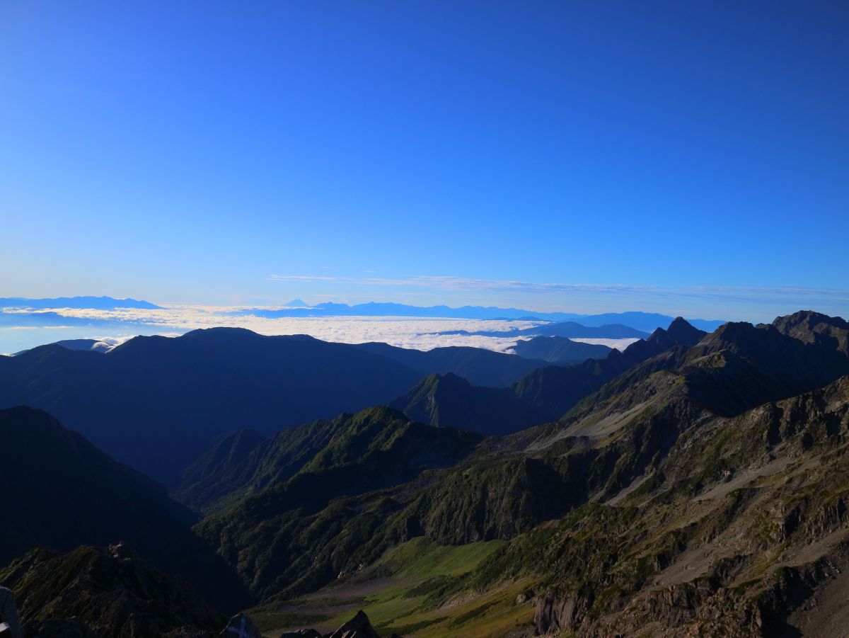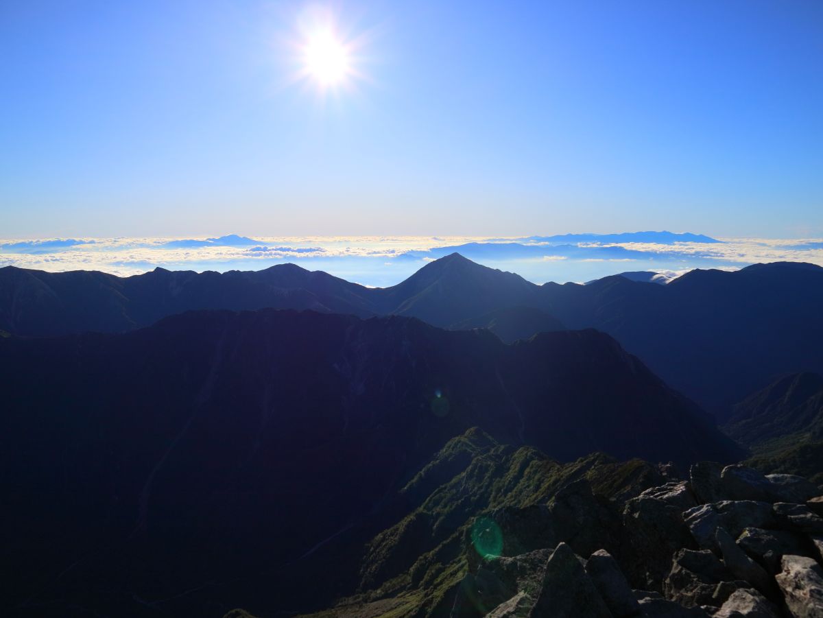 アルプスを見下ろす。黒部五郎岳や右奥は立山っぽい