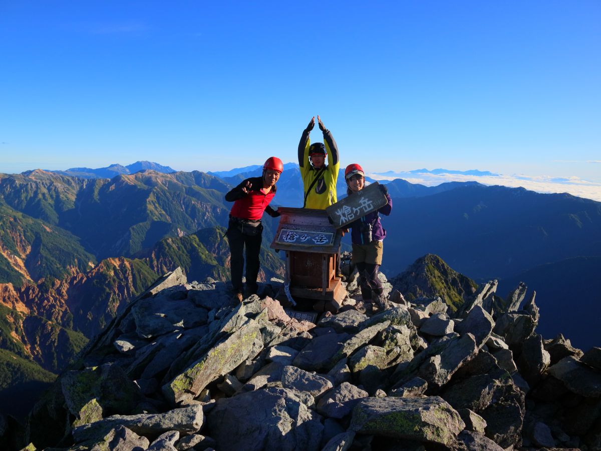人生で2度目の槍ヶ岳に行ってきました。前回は上高地から槍沢を経て2泊3日で槍ヶ岳に登りましたが、今回は最短ルートである新穂高温泉からのルートを1泊2日で行きました。天気予報では2日目の天気が悪かったのですが、後々で晴れになったことと、田村君が寝ずに運転してくれたので、次の日の深夜から槍ヶ岳に向かって出発することにしました。槍平小屋についてから1日目はかなり暇だったので日陰で動画みていました。次の日の深夜からスタート。通常のコースタイムでは槍平小屋から槍ヶ岳まで4時間半だったので予定通りの時間になりました。天気予報が嘘のように快晴になって、前回同様に槍ヶ岳の山頂から北アルプスの山々を望むことができました。やはり槍はいいですね!時間も押してたのでさっさと下山、槍平小屋まで超スピードで下ったのか2時間で下ってくることができました。テントを片付けて新穂高温泉への下り。気温があがって暑くなってまた立山の時と同じ症状になってしまいました。熱中症かなって思いましたが、なんとか白出沢まで到着した時、水分をかなりとると復活しました。こまめに水分補給をしていたつもりでしたが、実は発汗しすぎて水分補給量が足りてなかったってことがわかりました。今回は林道が長かったってことが辛かった一つでした。色々ありましたが、今年は快晴の槍ヶ岳に行けたので大満足でした。しかも連続で剱岳と槍ヶ岳に行けたことも本当に良かったです。