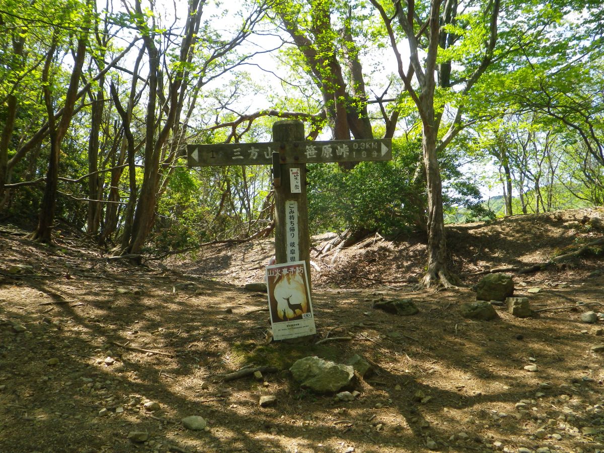 ここで分岐。三方山は左側の道を下りていく。三方山まで約60分かかると書いてるけど、もう少しかかるんじゃないかな!?