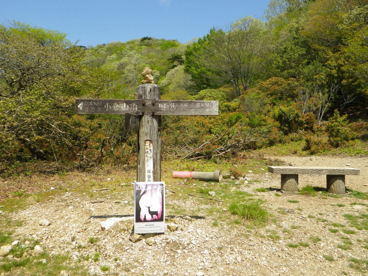 10分かかるかくらいで笹原峠に到着。ここにもベンチが設置されていた。次に目指すのは左の小倉山山頂で20分ほどで登れるようだ