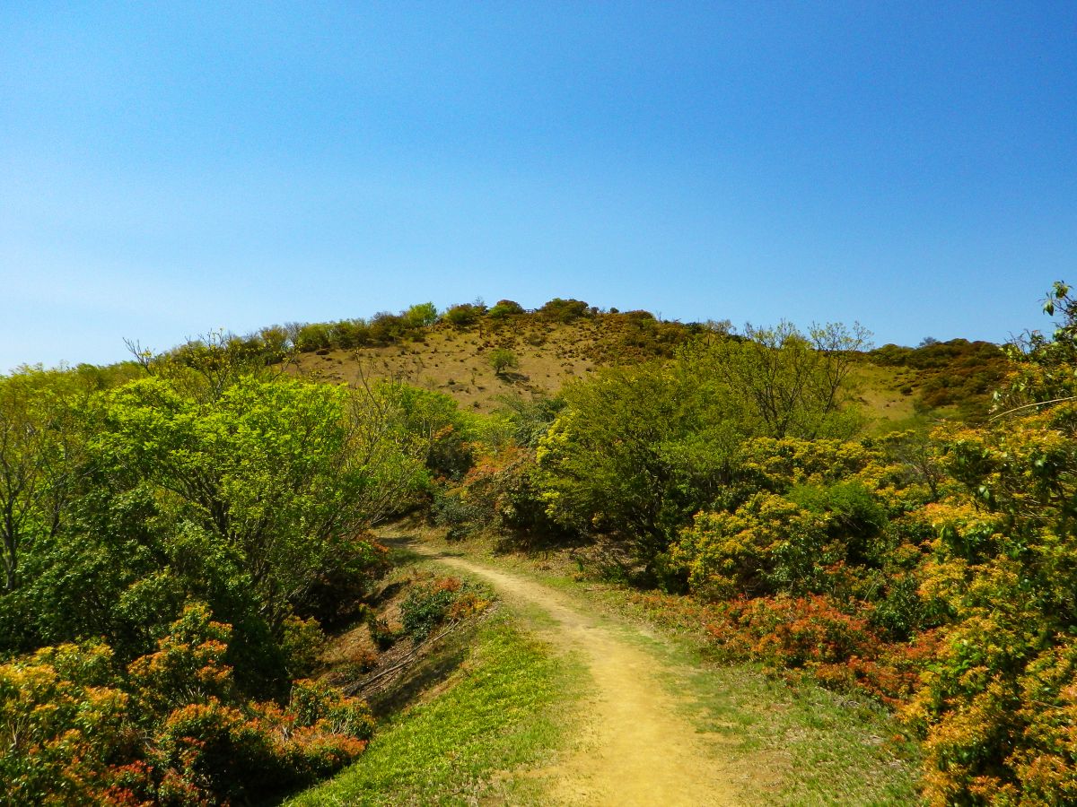 樹林帯を抜けて小倉山の山頂が見えた。ここからは登山道の雰囲気が変わって気持ちのいい登山道を登っていく