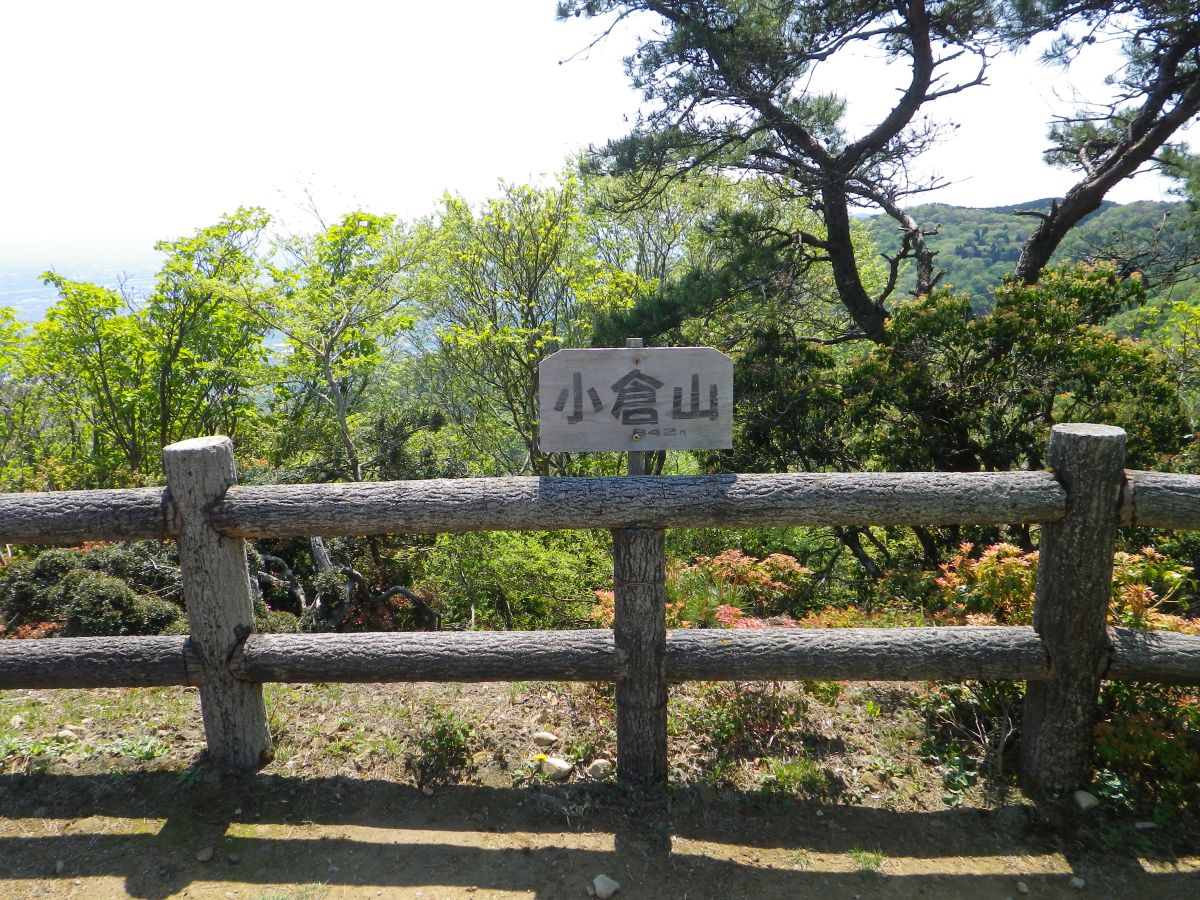 小倉山山頂(841m)に到着。山頂はこの小さなプレートがあるだけで後ろは広い山頂になっている