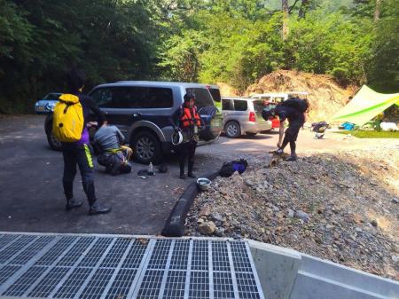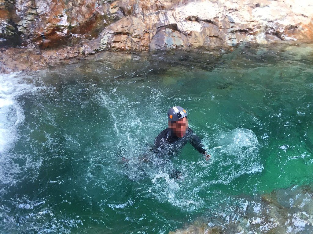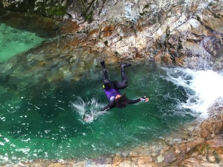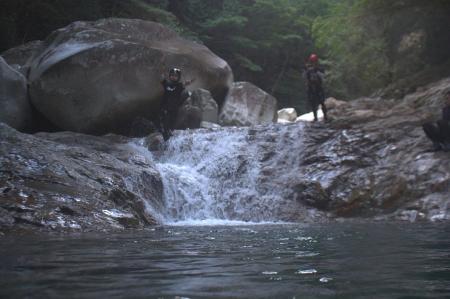 天気予報では急な天気の落雷やゲリラ豪雨に注意で下り時に曇ってきましたが、飛び込みも必死。とくにひでぶーさんの前転やらバク転やらの飛び込みを見ててめちゃ楽しかったです。
