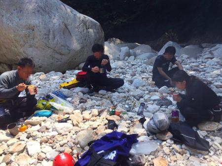 とにかく天気に恵まれ、沢もグッドな状態で素晴らしい大峰ブルーの沢を見ることができました。写真とかで見ていて綺麗なブルーと思っていましたが、実際にみるとその何百倍何千倍も美しい沢でした。